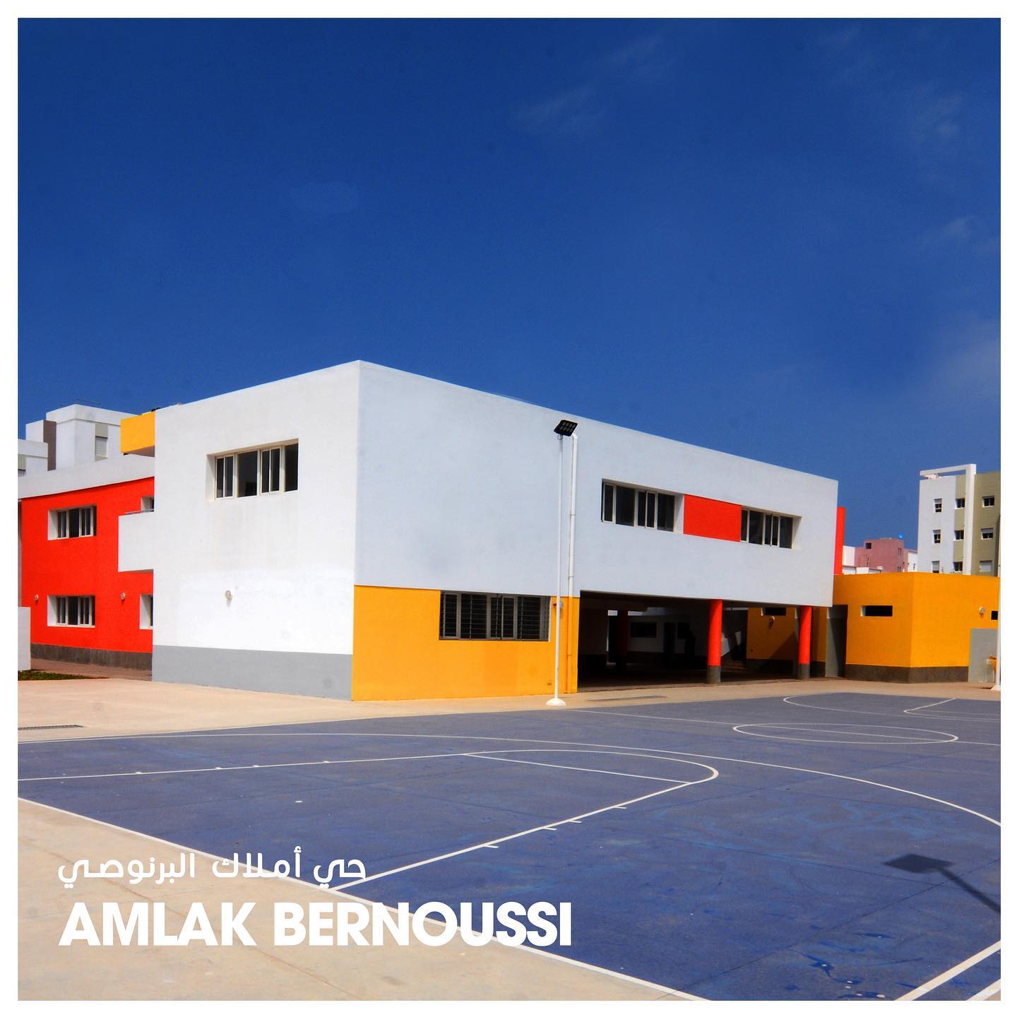 Le quartier Amlak Bernoussi offre un espace de vie à travers le développement de plusieurs équipements et services de proximités: école primaire, collège, marché municipal, mosquée, espaces verts, aires de jeux, terrains de sport, poste de police, centre de santé, four, hammam, complexe de développement humain.